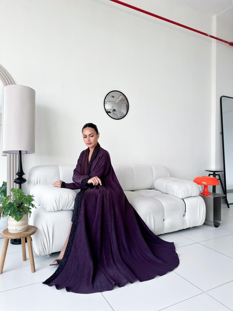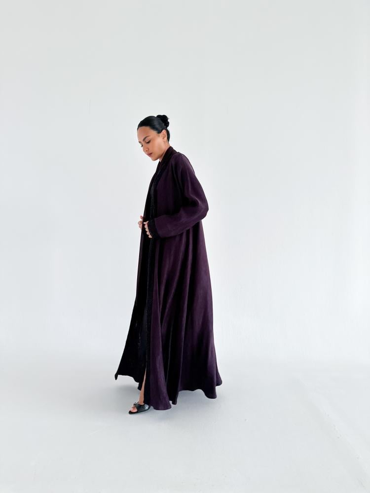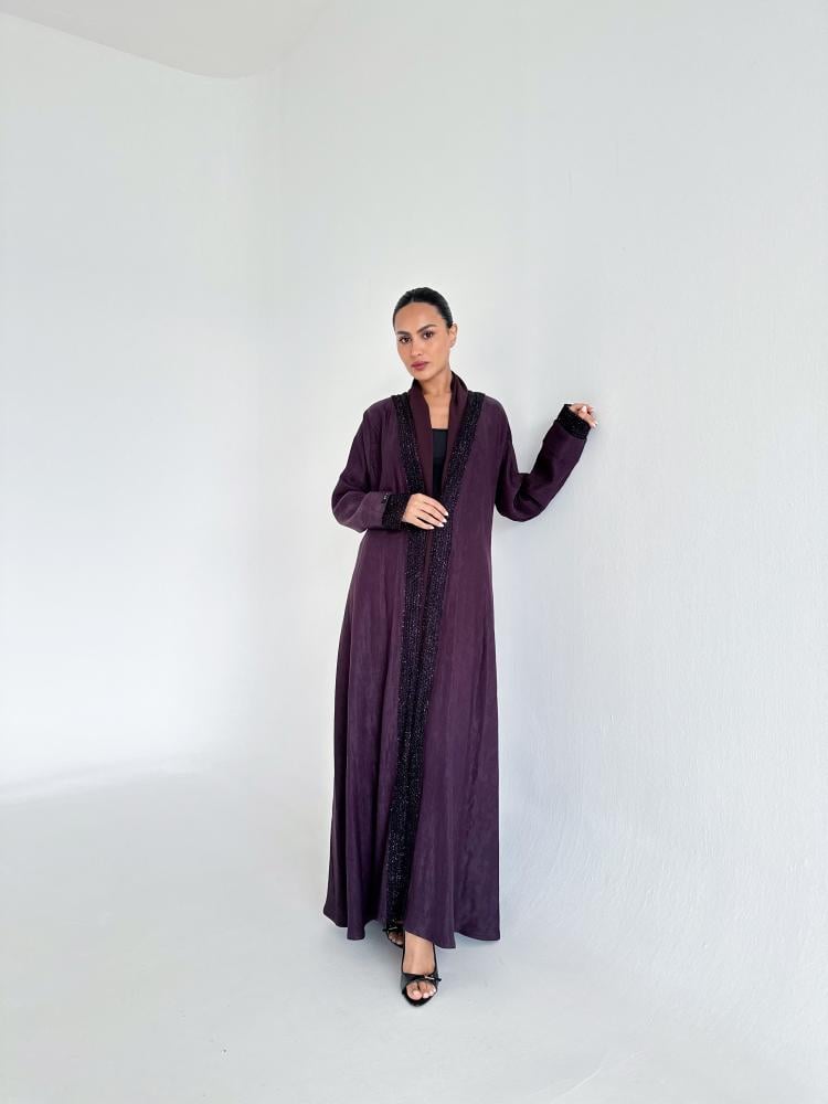 مميزات العباية : كريب نص كلوش خفيف ذات طابع شتوي
